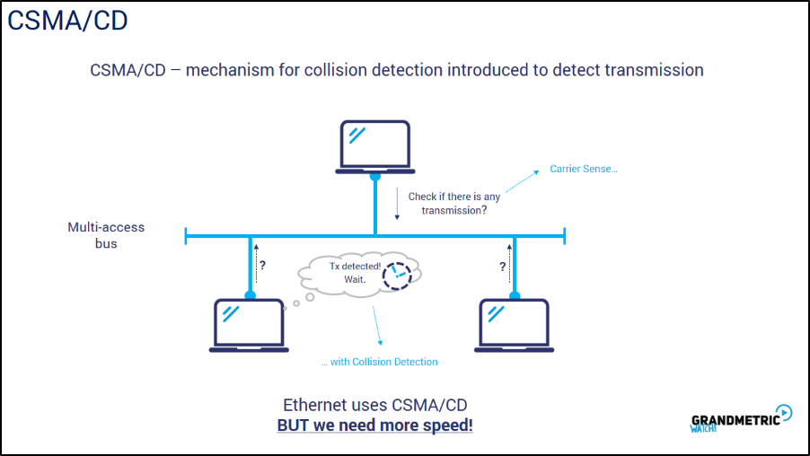 CSMA/CD는 Carrier Sense Multiple Access/Collision Detetion의 줄임말로, 네트워크에 케리어가 감지되지 않으면 frame을 전송하는 방식이다