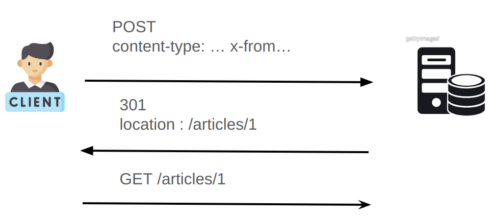 POST요청 후 응답을 301로 하면서 브라우저가 다시 Get 요청을 보낼 수 있도록 유도하는 것이다.