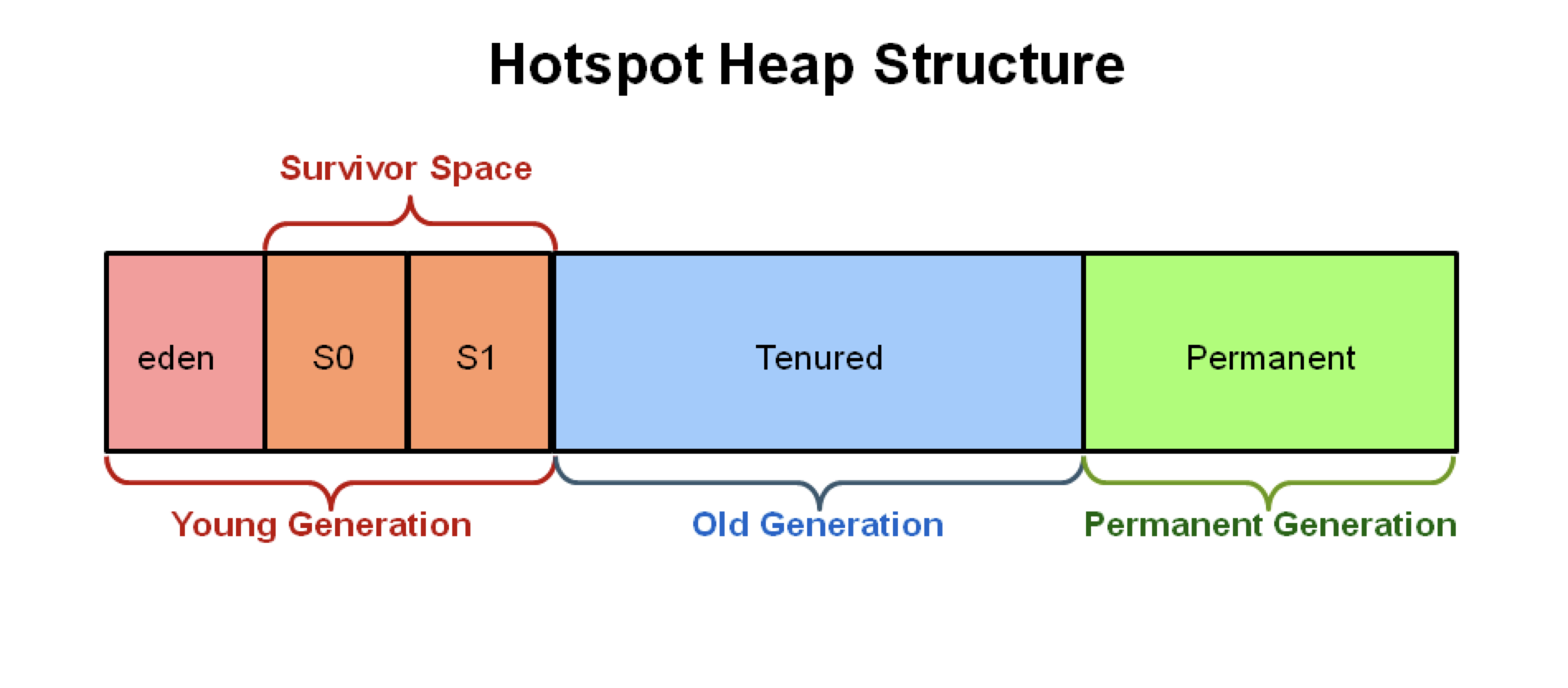 - Young Generation (Young 영역): 새롭게 생성된 객체들이 할당되는 영역입니다. 이 영역은 Eden 영역과 두 개의 Survivor 영역으로 나뉩니다. 새로운 객체는 처음에는 Eden 영역에 할당되며, 이후에는 Eden에서 살아남은 객체는 하나의 Survivor 영역으로 이동하게 됩니다. 주기적으로 GC가 실행되면, Eden 영역에 있는 객체들 중 살아남은 객체들이 다른 Survivor 영역으로 이동하거나 Old 영역으로 이동합니다.