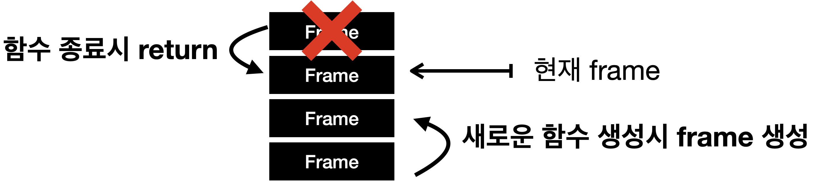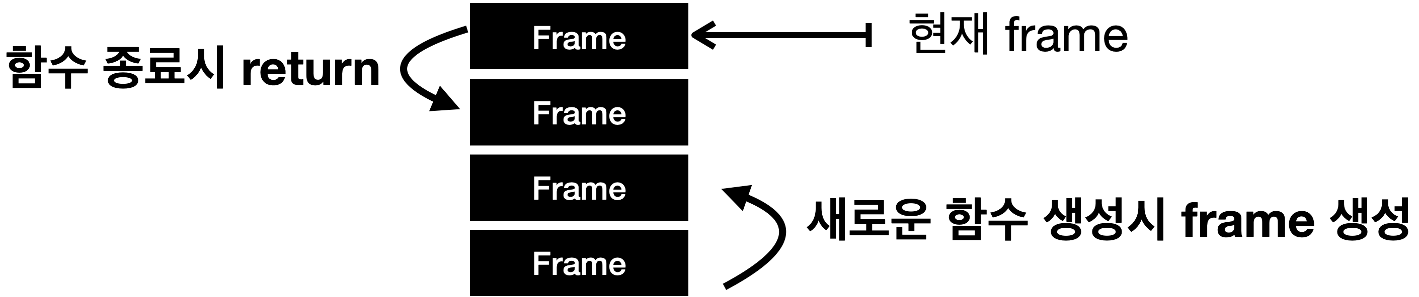 생명주기는 메서드가 호출될 때는 새로운 프레임이 생성되어 새로운 메서드로 제어가 전환됩니다. 메서드 반환 시 현재 프레임은 해당 메서드 호출 결과를 이전 프레임에게 반환하고 이전 프레임이 현재 프레임이 되면 현재 프레임은 파괴됩니다.