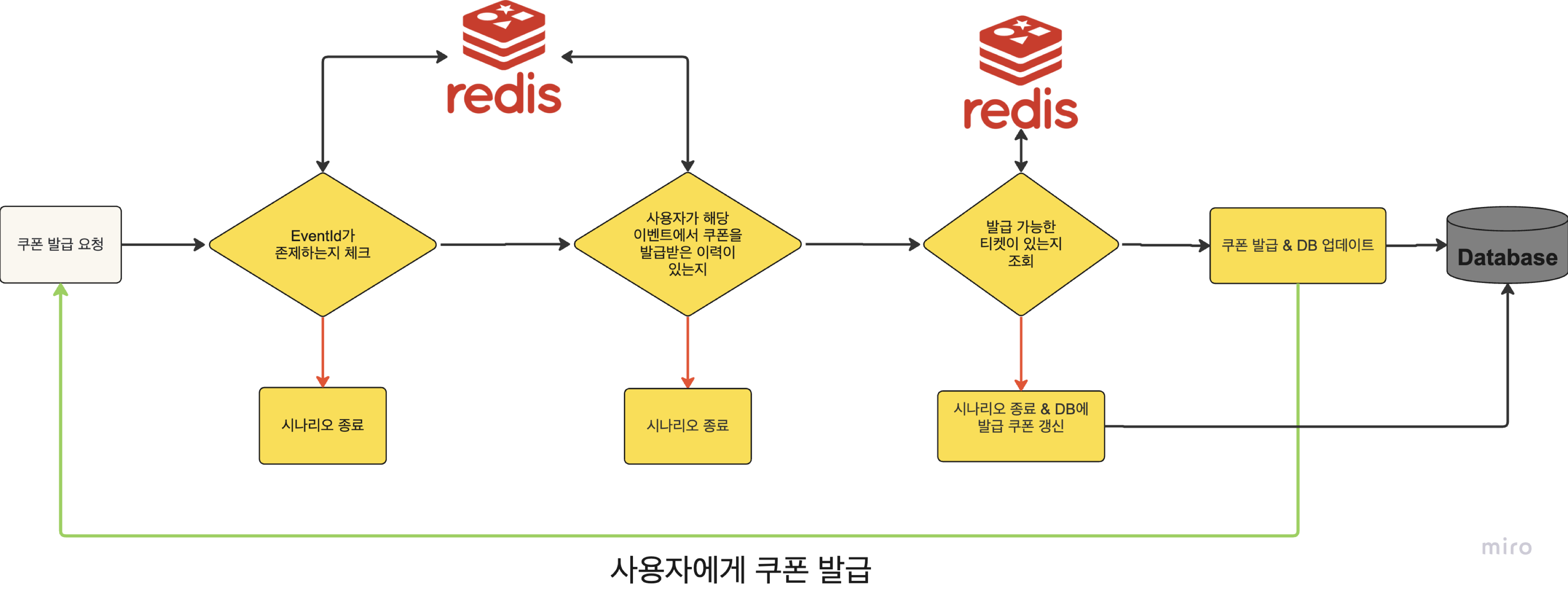 - 사용자의 발급 요청 수신: 사용자가 쿠폰 발급을 요청합니다.