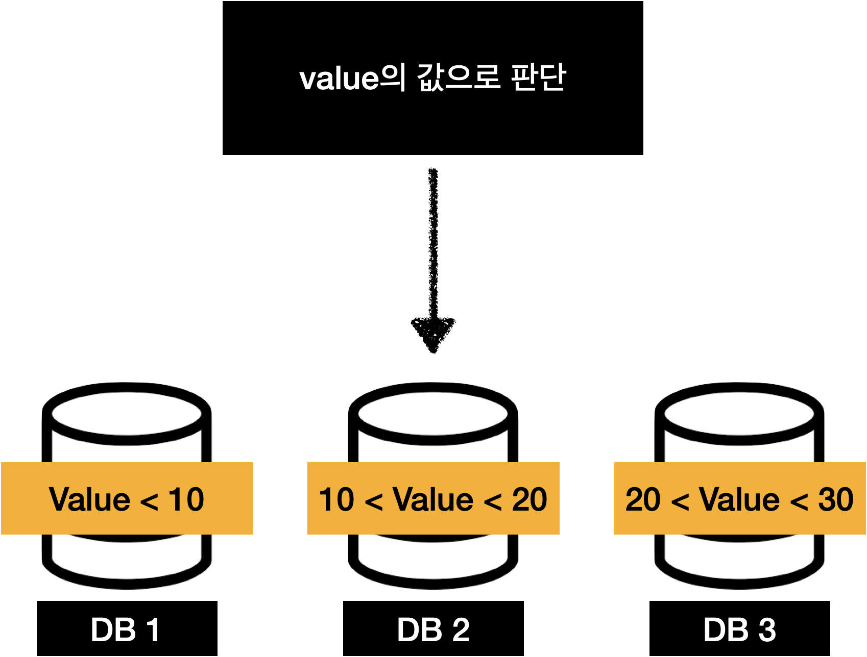 레인지 샤딩의 방식은 데이터를 키를 기준으로 저장소를 나누는 것입니다. 이 방식의 장점은 저장소가 추가되도 데이터의 재정렬이 발생하지 않습니다. 하지만 최악의 경우 특정 데이터베이스로만 값이 몰리게 되면서 샤딩 효과를 얻지 못한다는 단점이 생기게 됩니다. 이를 바로 Hot Spot 현상이라고 부릅니다.