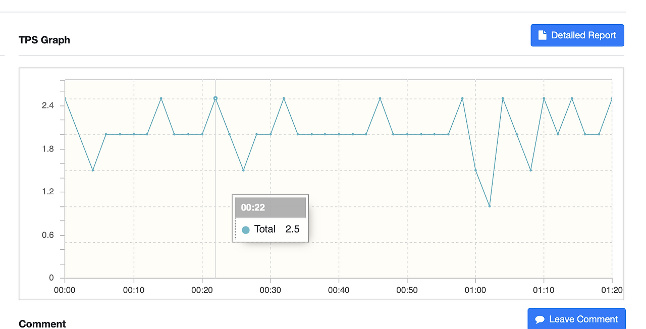 이후 TPS는 2,000에서 안정화되었지만, 목표(8,400 TPS)에 미치지 못했습니다.