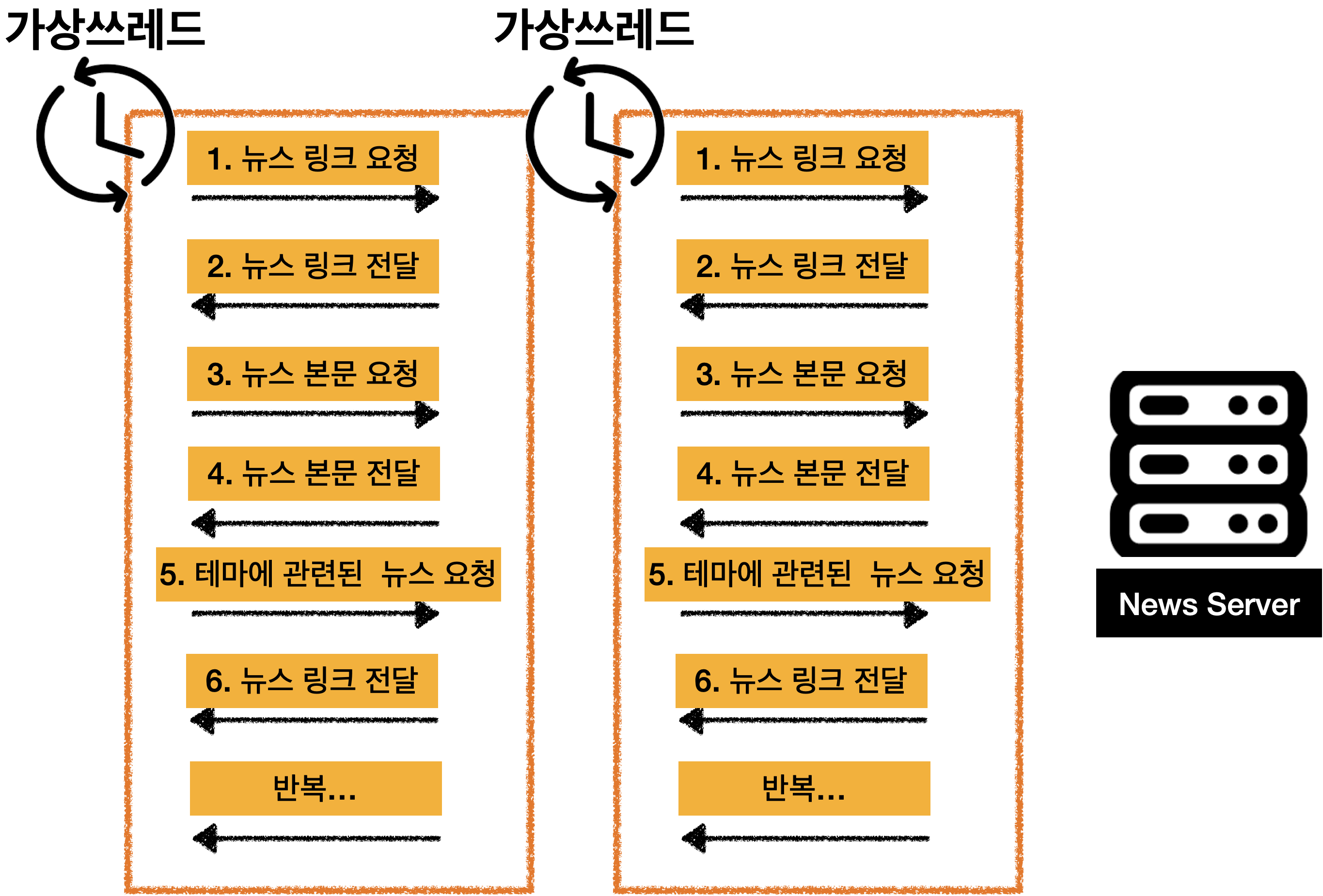 초창기에는 순차적(동기) HTTP 요청으로 처리했습니다. 이 경우,