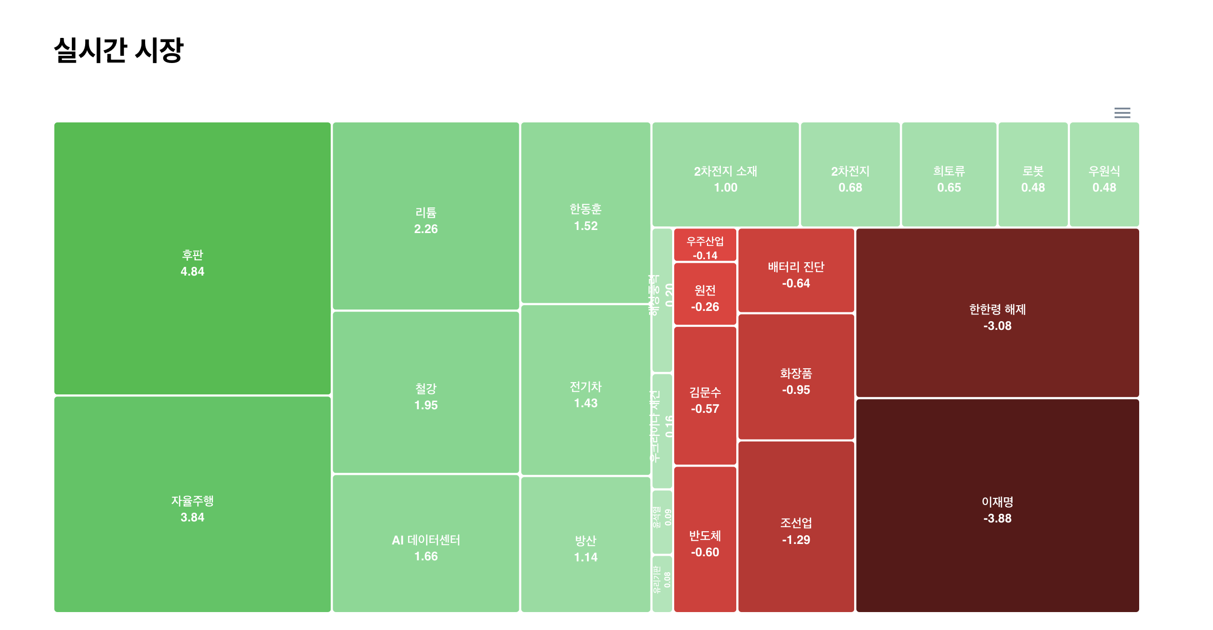 실제로 테마를 기준으로 트리맵을 구성하는 사례는 어디에서도 본 적이 없다. 그래서인지 사용자들이 “처음 보는 기능”이라고 반응하고, 그 부분이 개발자에게 큰 재비로 다가왔다.