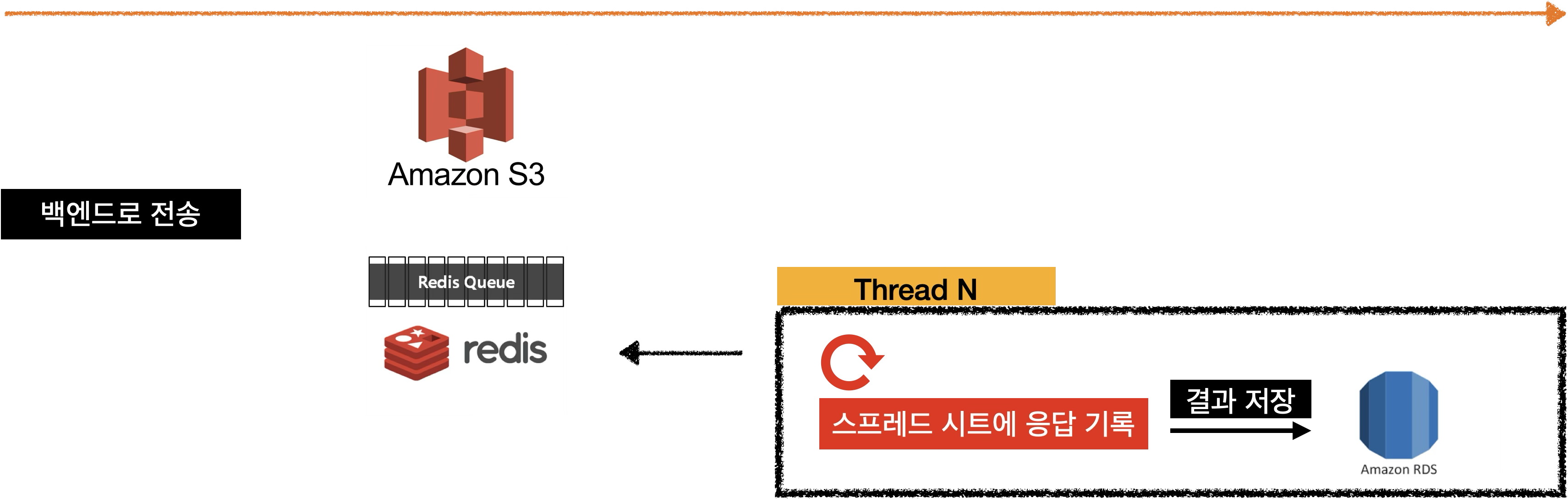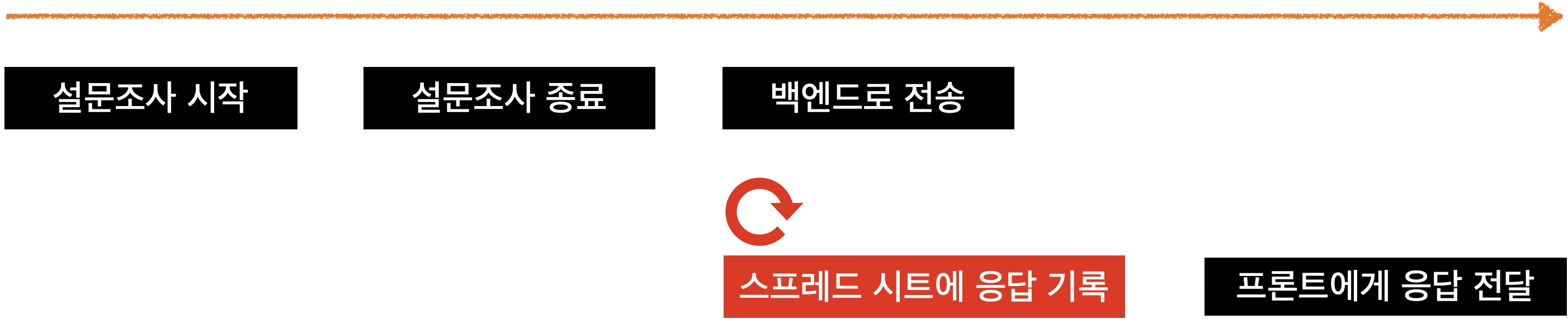 고객에게 환급금을 정확히 돌려주기 위해서는 체크리스트 설문이 필요합니다. 이 설문은 단순히 선택만 하는 게 아니라, 스프레드시트에 응답을 저장하고, 이를 분석해 결과를 추론하는 복합적인 로직을 포함하고 있습니다. 이 전체 과정에는 20초 정도의 시간이 걸리게 되기 때문에 이 과정을 처음 설계할 때부터 “이건 절대 동기식으로 처리하면 안 되겠다”고 판단했습니다.