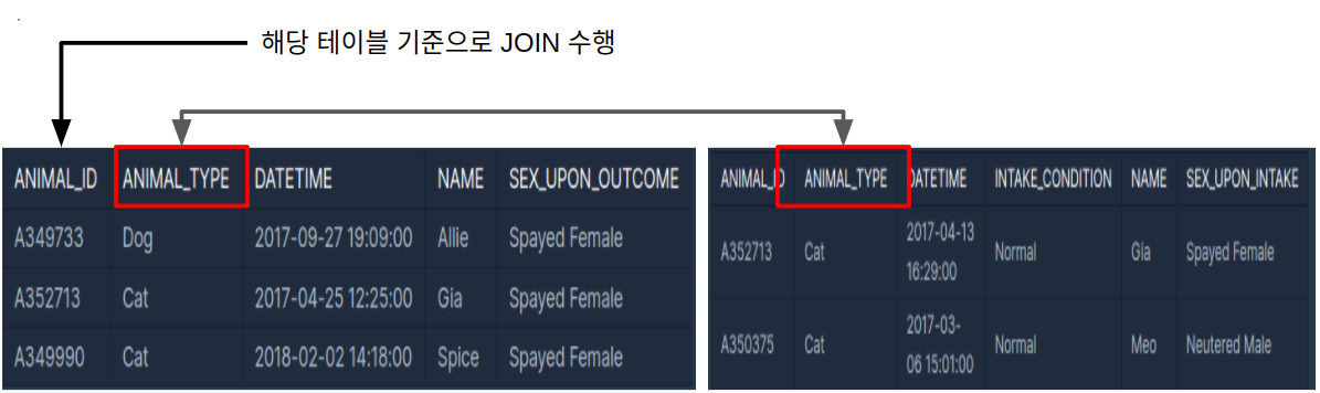 아래 사진은 LEFT OUTER JOIN의 예시로 다른 조인들의 방식도 LEFT와 같다고 생각하시면 된다.