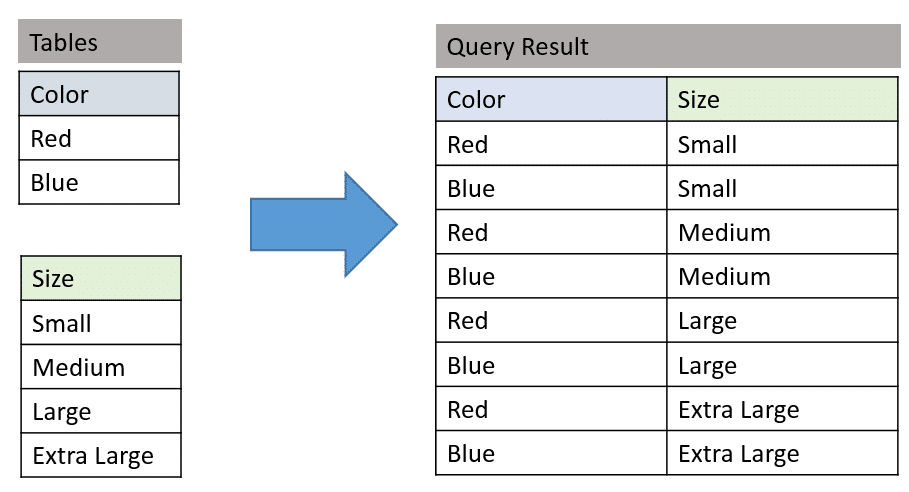 크로스 조인의 경우 카타시안 곱을 생각하시면 된다.