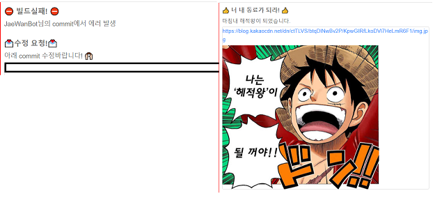 git action의 success 함수를 사용하여 action의 성공 여부에 따라서 사용자에게 메세지를 달리 구성해서 전송하도록 했습니다.