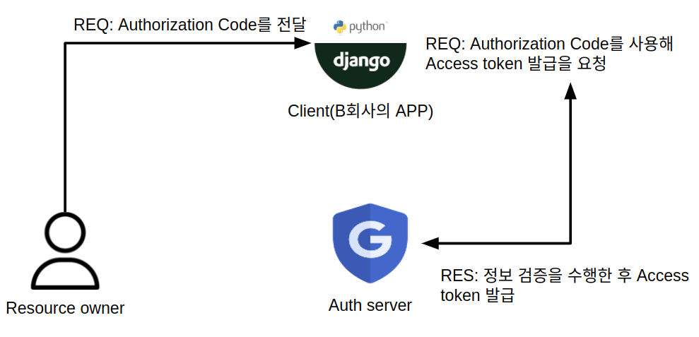 - Client는 Redirect URL에 포함된 Authorization Code를 사용해 Auth Server에 Access Token 발급을 요청합니다.