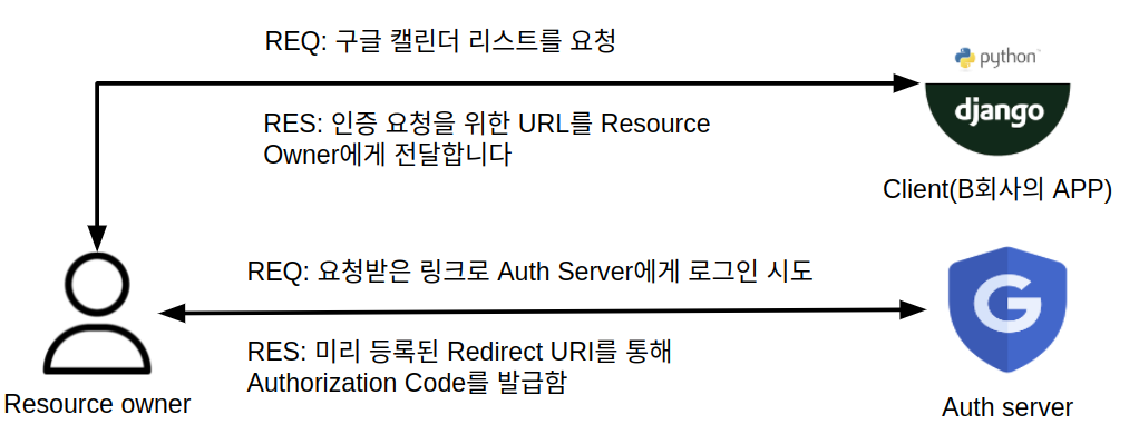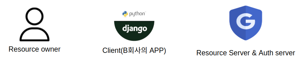 OAuth 2.0의 개념과 목적을 설명하면서 들었던 예시를 다시 보면 B회사의 APP을 사용하는 사용자가 Resource Owner, Google이 Resoure Server 및 Auth Server가 됩니다.